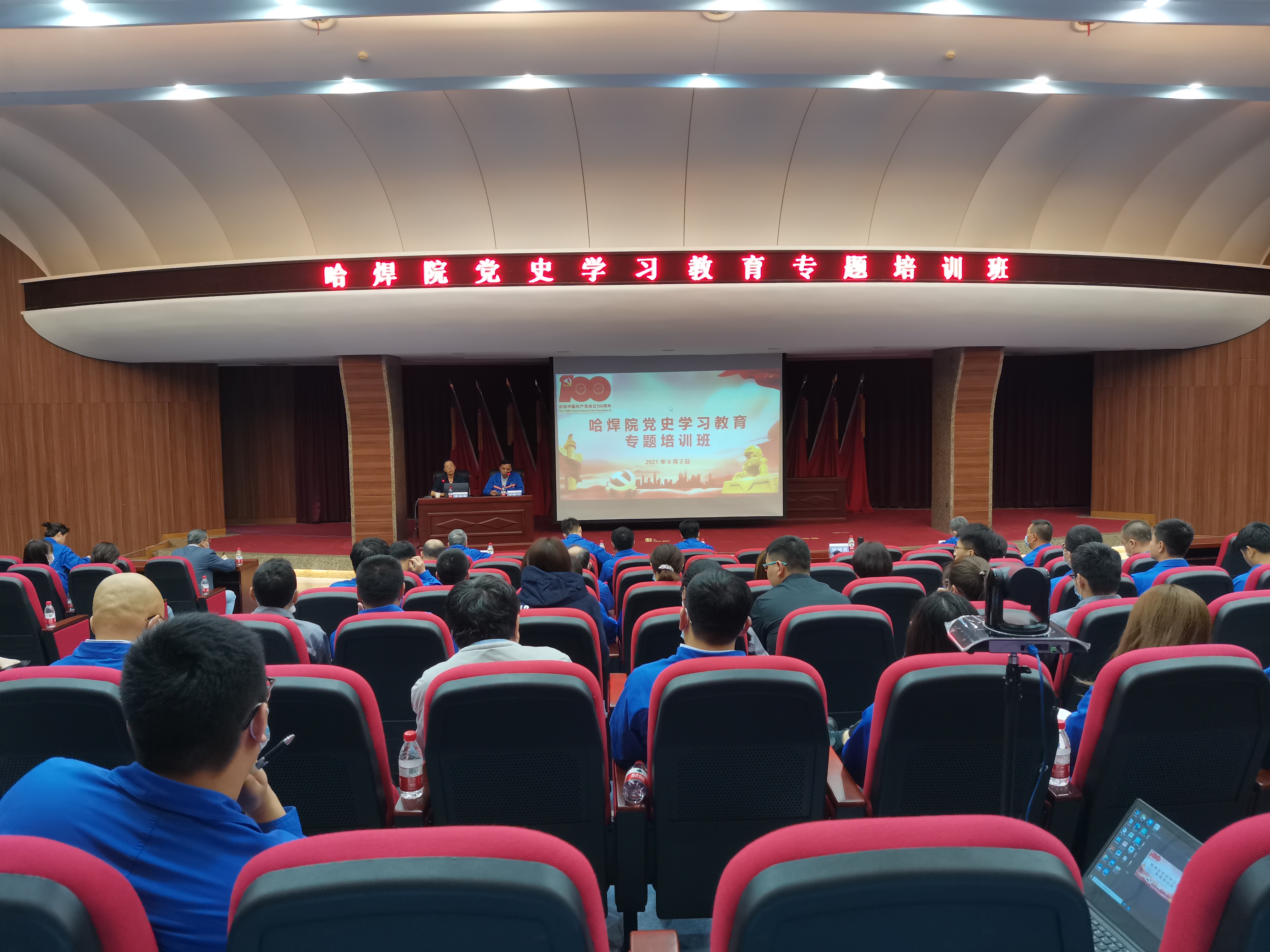哈焊華通公司經(jīng)理層、黨支部書記及委員、黨員代表在常州視頻分會(huì)場(chǎng)參加培訓(xùn)。