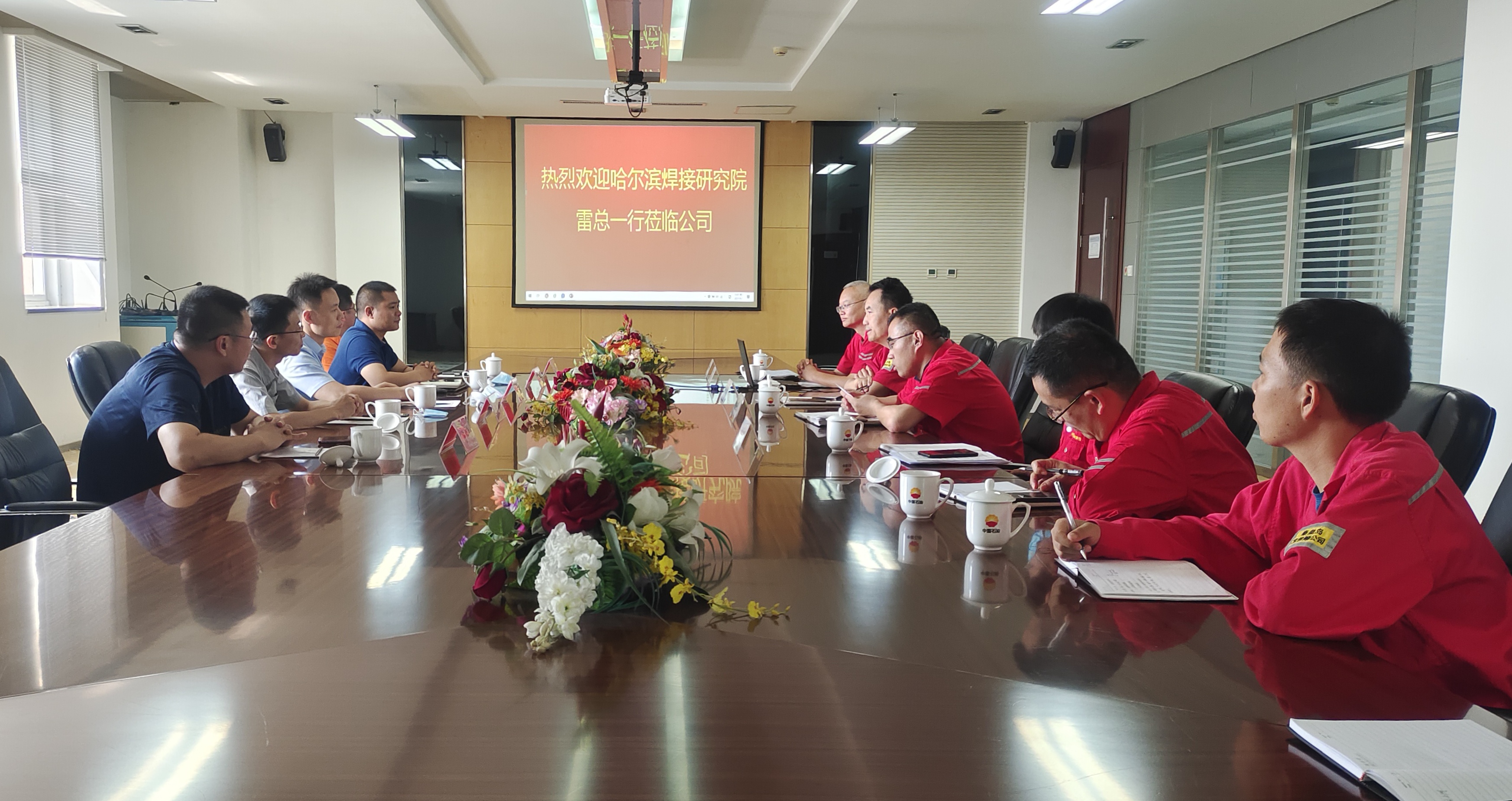 9月1日,哈焊院副總經(jīng)理雷振一行五人赴中油寶世順(秦皇島)鋼管有限公司考察交流,寶世順公司執(zhí)行董事、總經(jīng)理?;⑶笨偨?jīng)理張世濤出席交流活動。