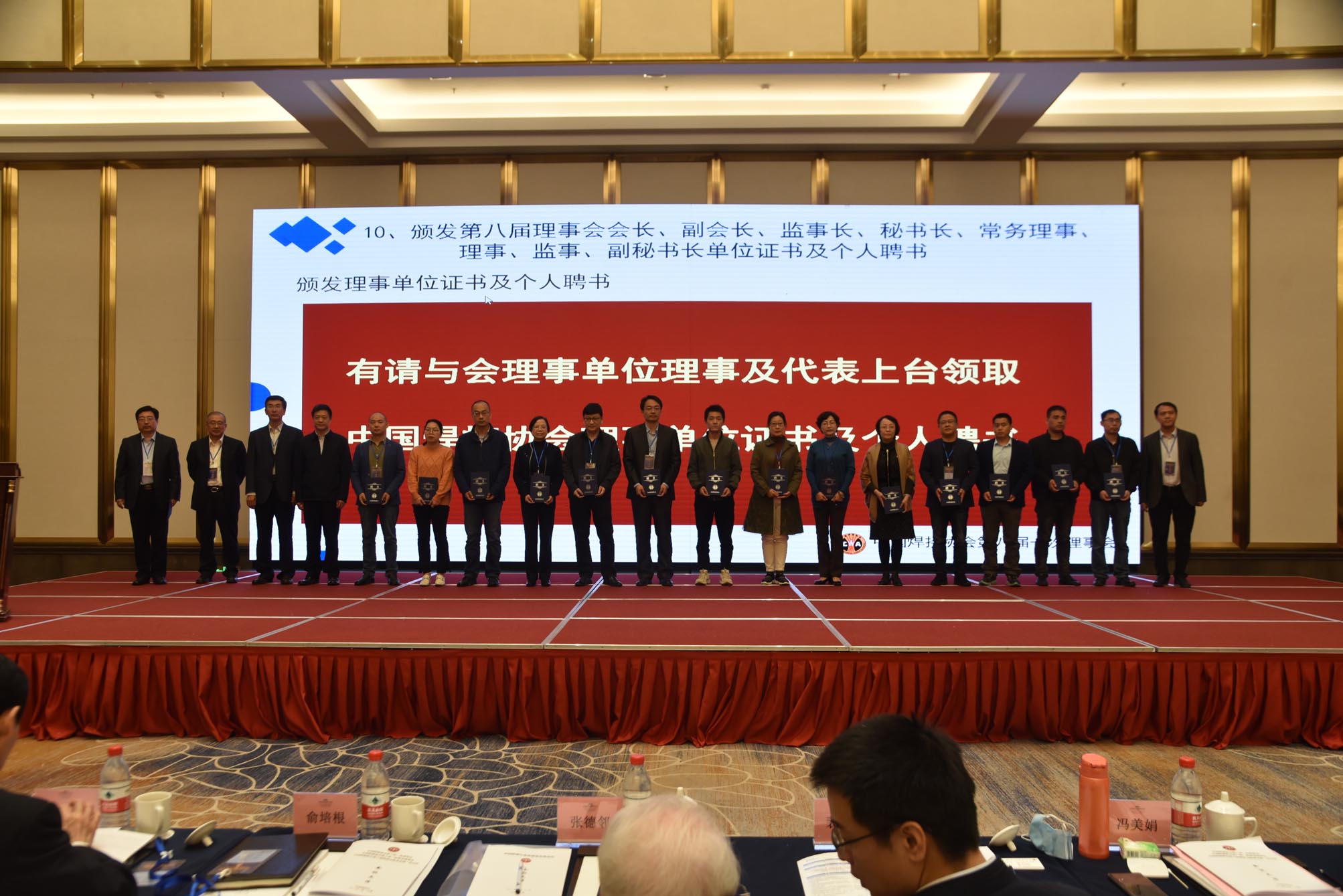 隨后大會進入頒發(fā)第八屆理事會會長、副會長、監(jiān)事長、秘書長、常務(wù)理事、理事、監(jiān)事、副秘書長單位證書及個人聘書環(huán)節(jié)。
